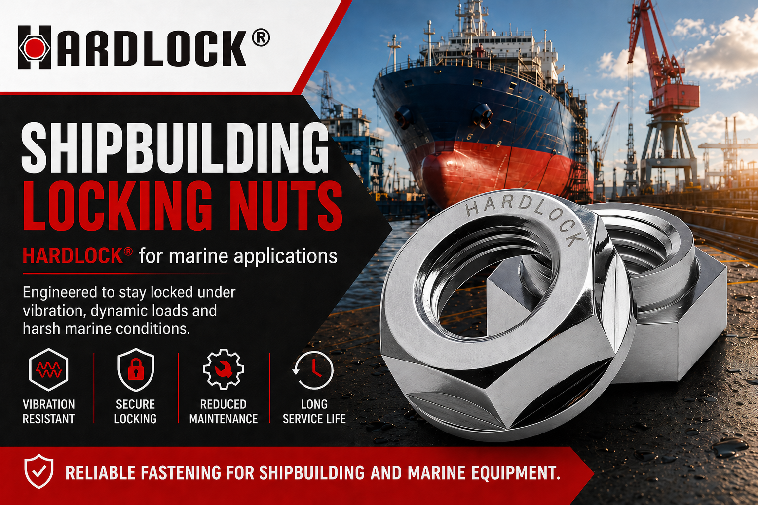 This is why advanced mechanical fastening solutions such as HARDLOCK® nuts are increasingly used in vibration-critical marine and shipbuilding applications.